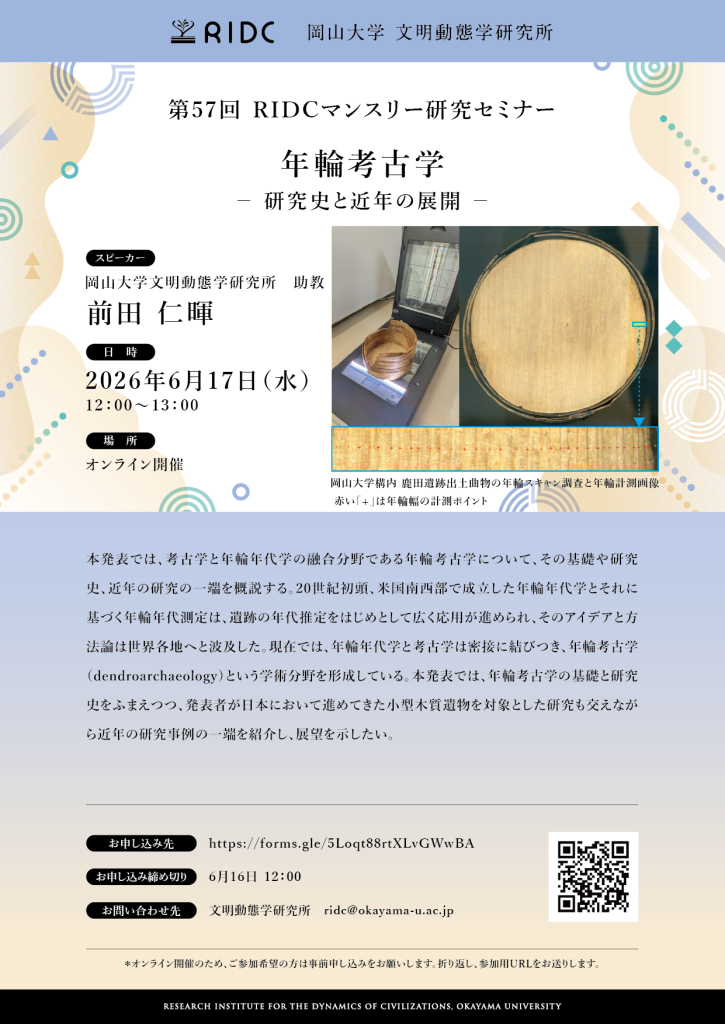 | 【問い合わせ先】 | 岡山大学 文明動態学研究所 ridc@okayama-u.ac.jp |