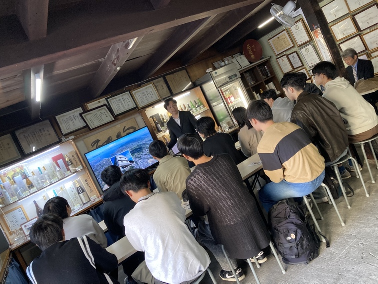 2025年11月11日に岡山大学経済学部の津守ゼミの学生とともに地元の日本酒の蔵元である菊池酒造(岡山県倉敷市玉島)を訪問しました。地方の中小蔵元のコア・コンピタンスのあり方や今後の成長戦略について調査するためです。当日は、菊池大輔社長から同社の日本酒の輸出も含めた市場分析とマーケティング戦略等についての説明を受けました。