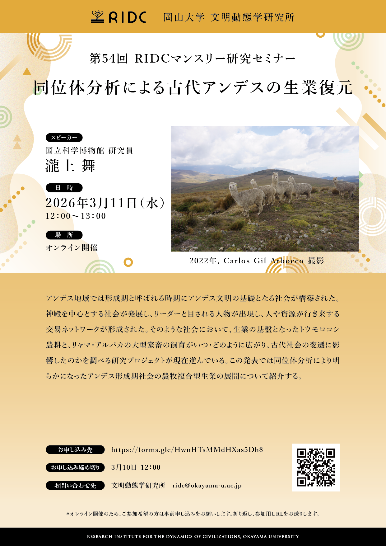 | 【問い合わせ先】 | 岡山大学 文明動態学研究所 ridc@okayama-u.ac.jp |